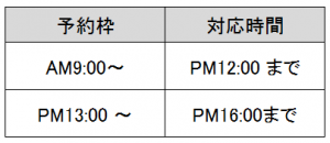 この度、10月1日(火)からショールームの予約時間を下表の通り変更致します。
